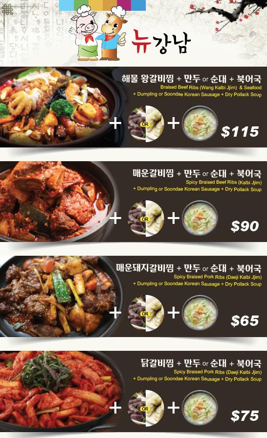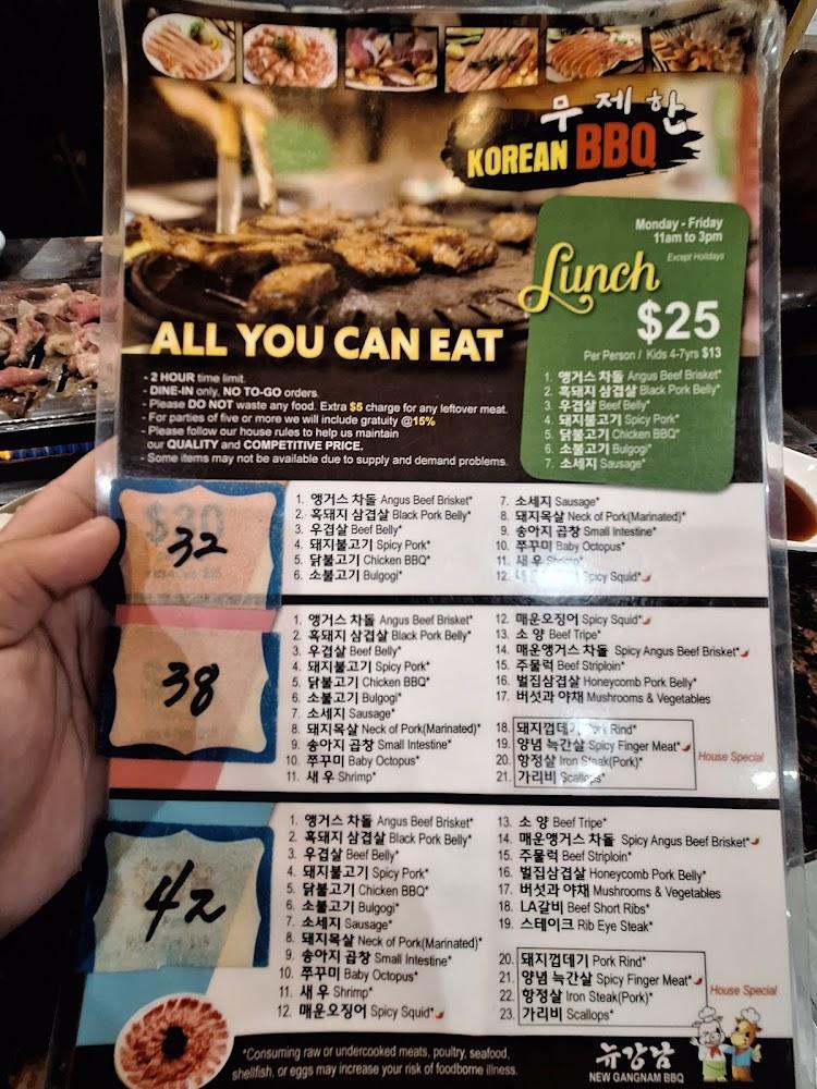 The menu at New Gangnam BBQ I features a wide array of Korean dishes. From sizzling meats to hearty soups, it appeals to diverse tastes. Popular items include bibimbap, dumpling soup, and a variety of grilled fish.
